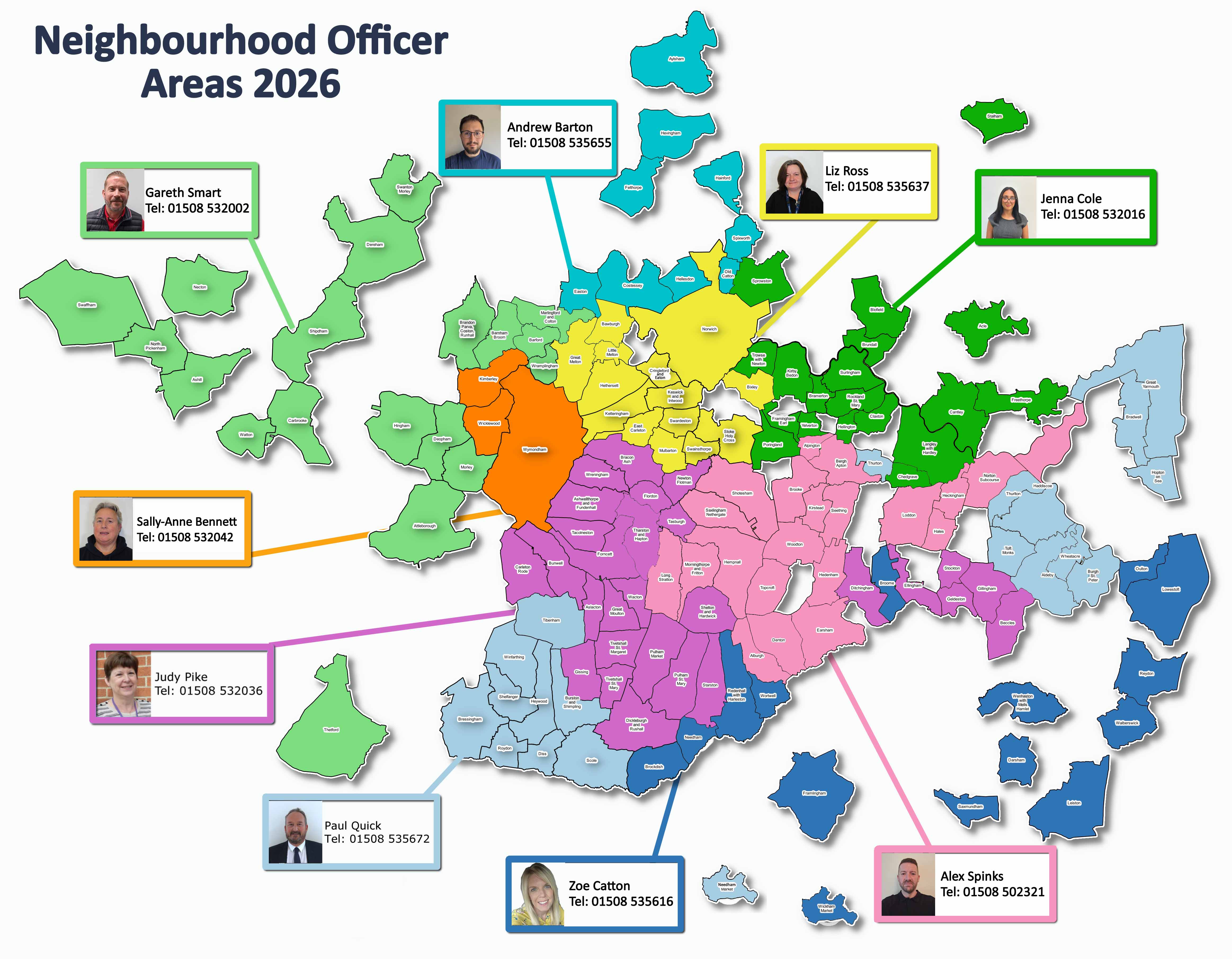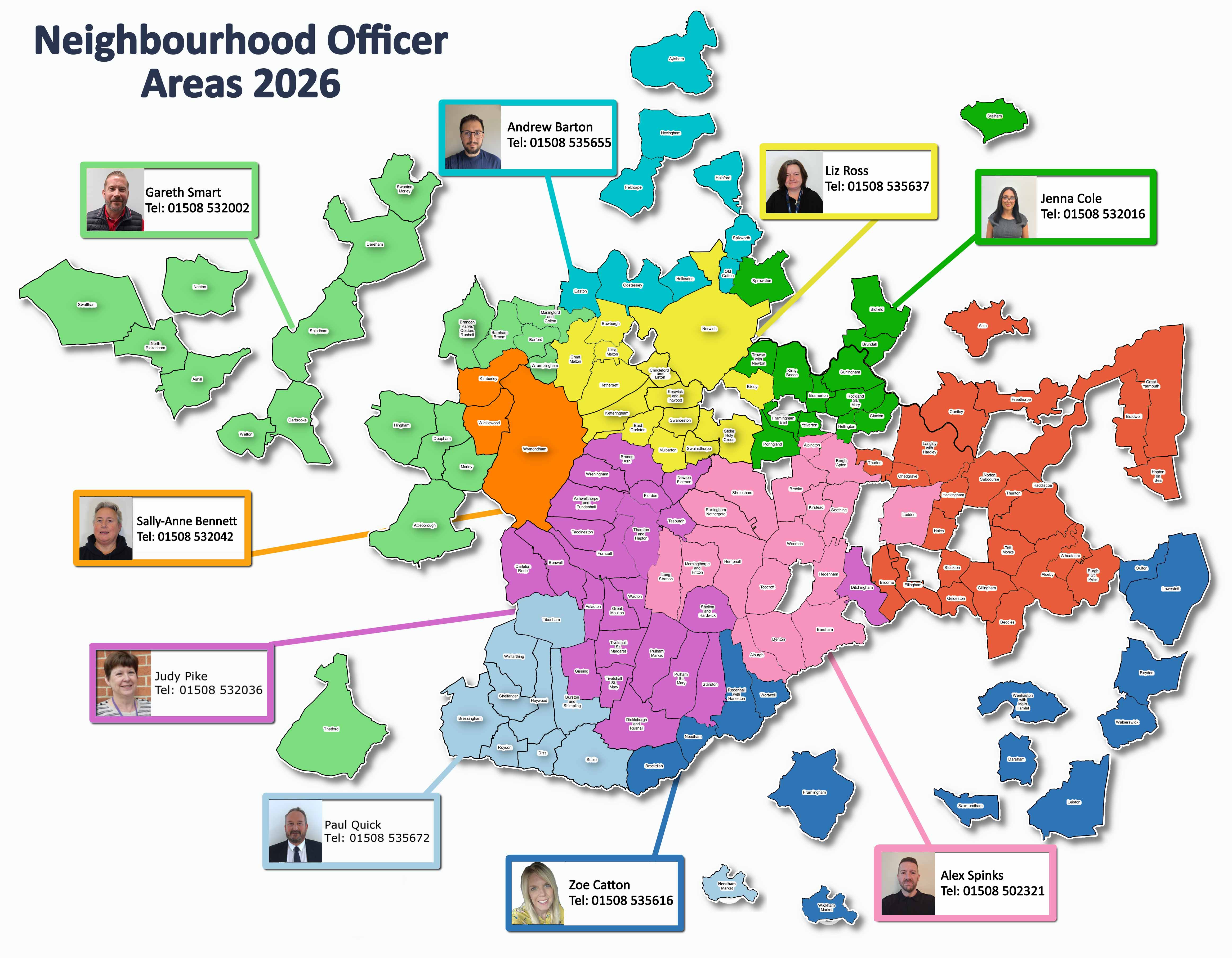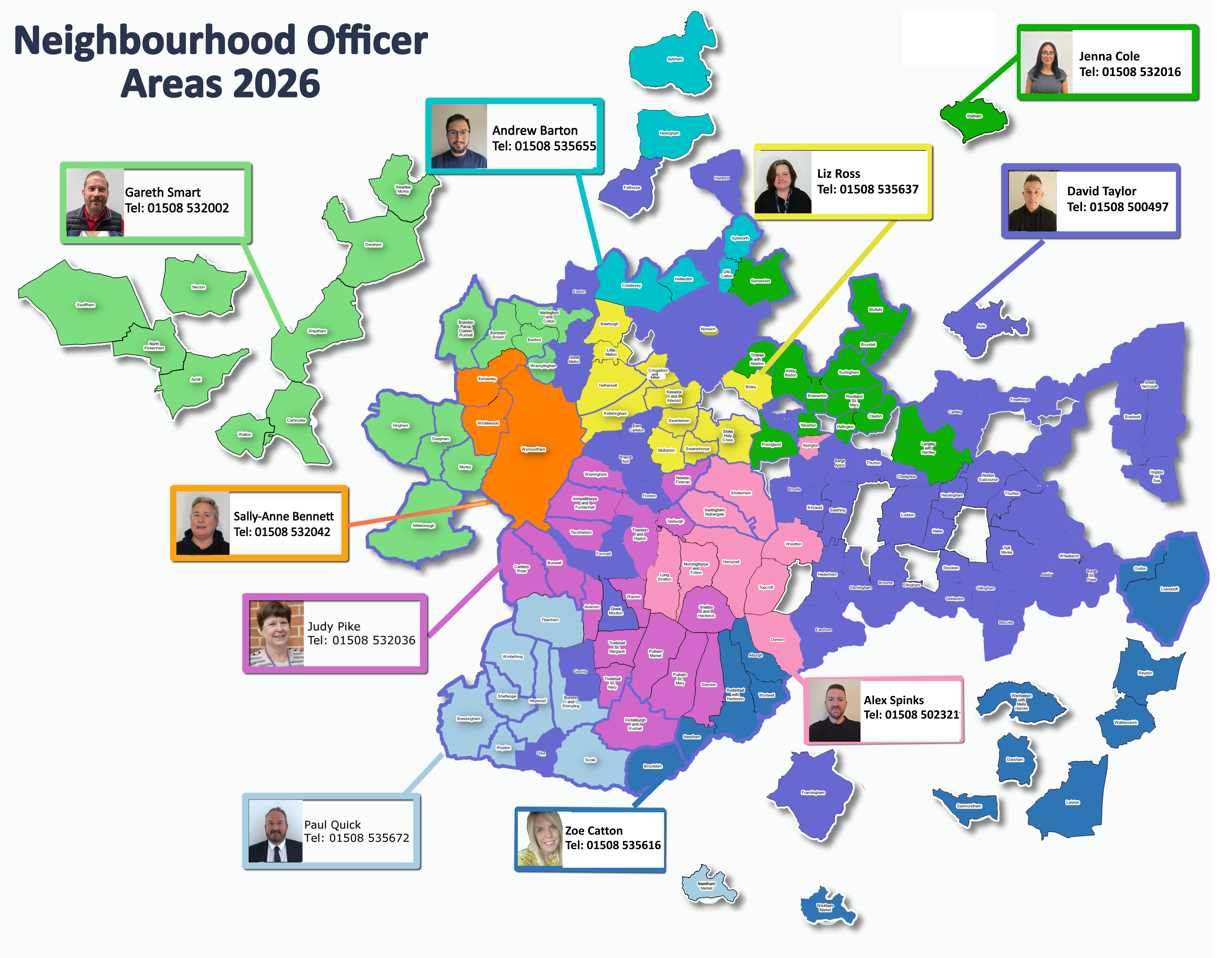 If you need to speak to your Neighbourhood Officer, call us on 01508 532000, providing as much information as possible so that our Neighbourhood Officers can respond in the best way to your enquiry.