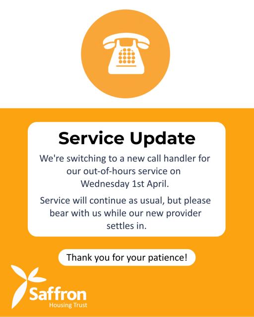 Our contact telephone number remains the same, whatever time or day: 01508 532000. A reminder, our out-of-hours service is available from Monday – Thursday, 5:00pm -8.45am and Friday 4:15 PM - 8.45am Monday morning.
